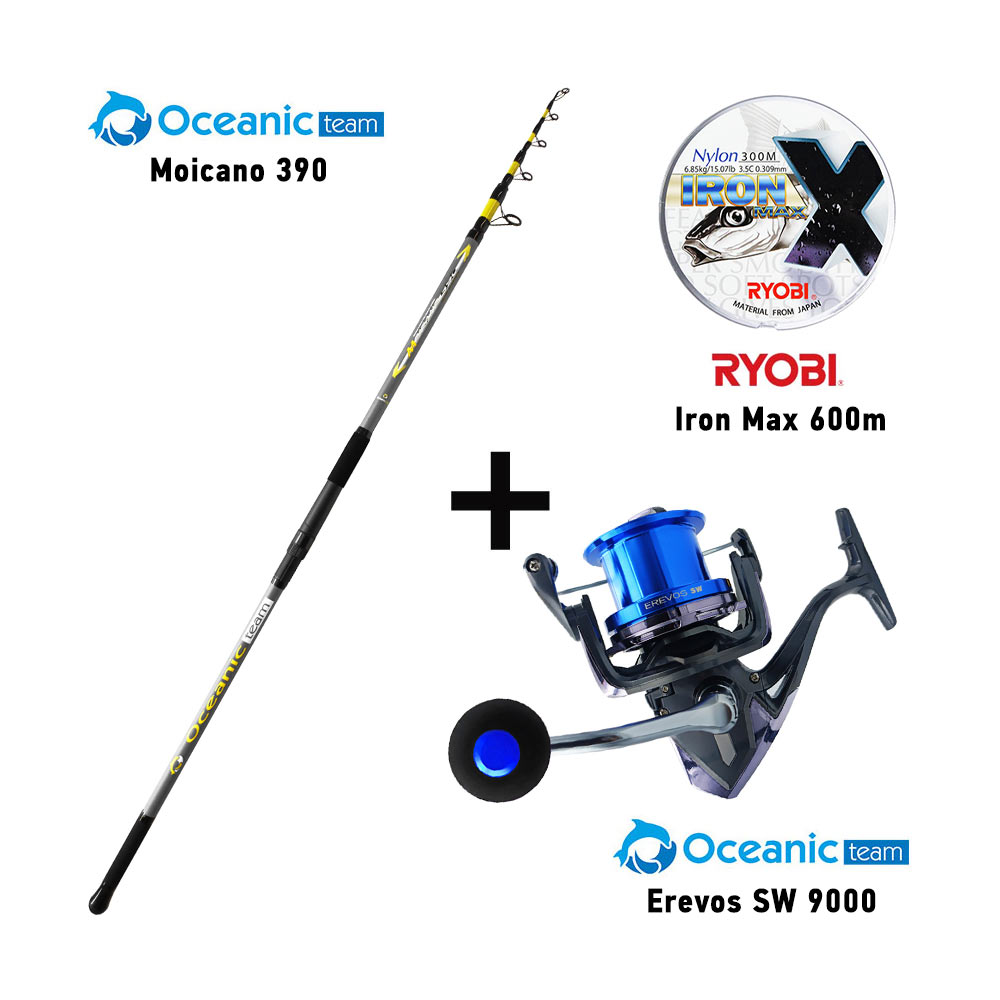 Combo Surf Casting Oceanic Team Moicano 390 + Oceanic Team Erevos SW 9000 + Ryobi Iron Max 300m