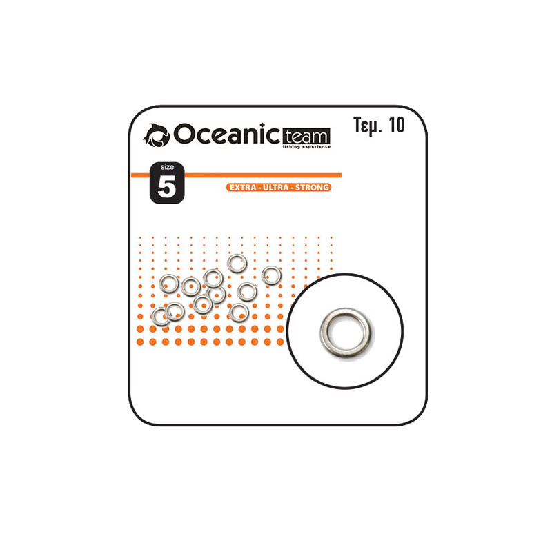 Ανοξείδωτοι κρίκοι Solid Ring από την Oceanic Team. Κατάλληλοι για να συνδέσετε πλάνους και τεχνητά με νήμα χωρίς να υπάρχει κίνδυνος να κοπεί λόγω τριβής. Διατίθεται σε συσκευασία των 10 τεμαχίων.