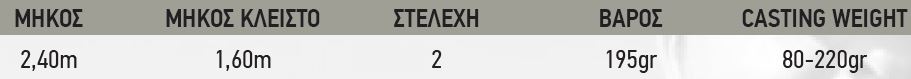 Κατασκευασμένο με βάση την Ιαπωνική τεχνολογία η εταιρεία Oceanic, έδωσε έμφαση στο να διατηρήσει το βάρος του σε χαμηλά επίπεδα αλλά και τη δύναμη σε πολύ υψηλά, κάνοντας το Slow jerker το μοντέλο που θα εντυπωσιάσει τους απανταχού λάτρεις τεχνικών όπως Inchiku, Long Fall άλλα και Slow Jigging. Εξοπλισμένο με άριστα εξαρτήματα, διαθέτει δετούς οδηγούς Fuji τοποθετημένους περιστροφικά στον κορμό του καλαμιού, ώστε να μηδενίζουν την τάση περιστροφής και να προσφέρουν καλύτερη ολίσθηση του νήματος και μεγαλύτερη ικανότητα έλξης. Εξαιρετικά δυνατό, με μοναδική ευαισθησία, το Slow jerker θα ανταποκριθεί σε οποιαδήποτε μάχη και θα σας δώσει μια ξεχωριστή ψαρευτική εμπειρία σε μεσαία και μεγάλα βάθη. Το Casting Weight του είναι μεταξύ 80 – 220gr για να καλύψει μεγάλη γκάμα πλάνων.